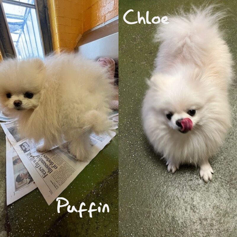 Tiny Chloe and Puffin have just arrived from China, where they were sadly destined for the meat trade. They are now looking for their forever homes, as a pair or separately. Please note the photos were taken at the airport when they arrived; the dogs have been through a lot of trauma, may not yet be socialised, and are likely feeling institutionalised. These two little souls deserve gentle, patient owners, ready to help them begin a new home here in the UK.