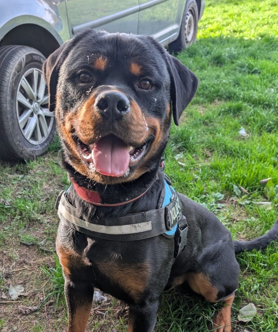 Handsome Flash is looking for a new home after he was sadly abandoned. He’s a young, active rottie that is full of enthusiasm. He would like a home with owners that have had large breeds before. He will need a garden of his own to run about in, and owners who are around for a large portion of the day to help him settle in, and take him on lovely walks. He is very keen to learn so would suit someone who enjoys training, or may want to take him to classes.