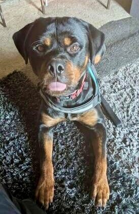Male Rottweiler 1 year Can live with a female dog, Can live with children over 16, Can't live in a flat, Can't live with cats, I am an active breed, Needs direct access to a garden, Needs someone who's home most of the day Available for adoption