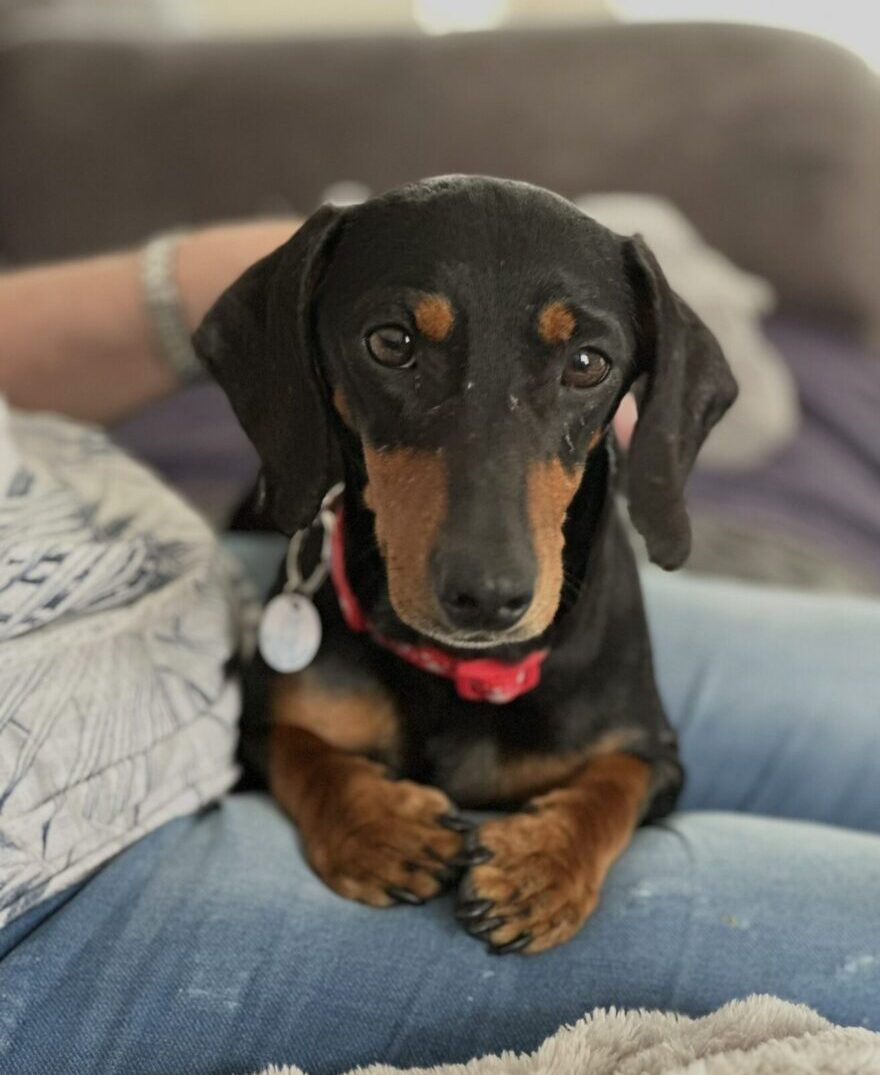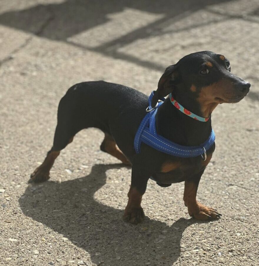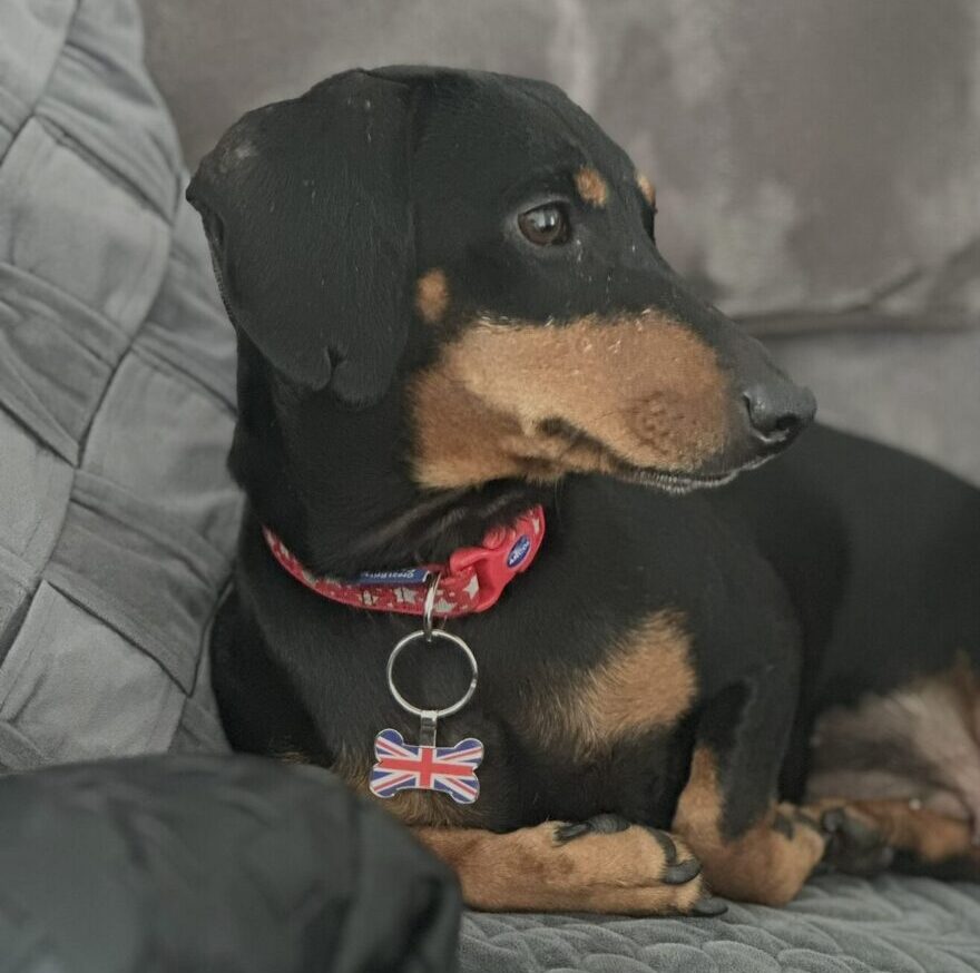 Flo is a great little dog, she is a typical Daxie, and enjoys spending the majority of time judging humans. She loves her walks (as long as it’s not raining) and snuffling around in the garden. Flo loves her humans, sometimes a little too much, so is looking for an owner who can help her work on boundaries and meeting new people. She likes meeting other dogs when out, and could live with a calm male dog, pending introductions.