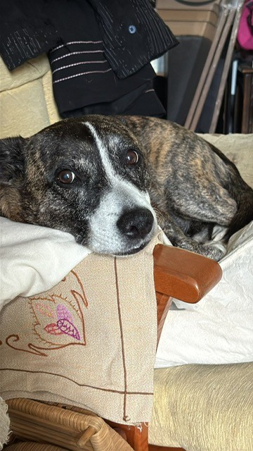 Female Staffie 9 years Can live with children over 12, Can't live with cats, Can't live with other dogs, Needs direct access to a garden, Needs someone who's home most of the day Available for adoption