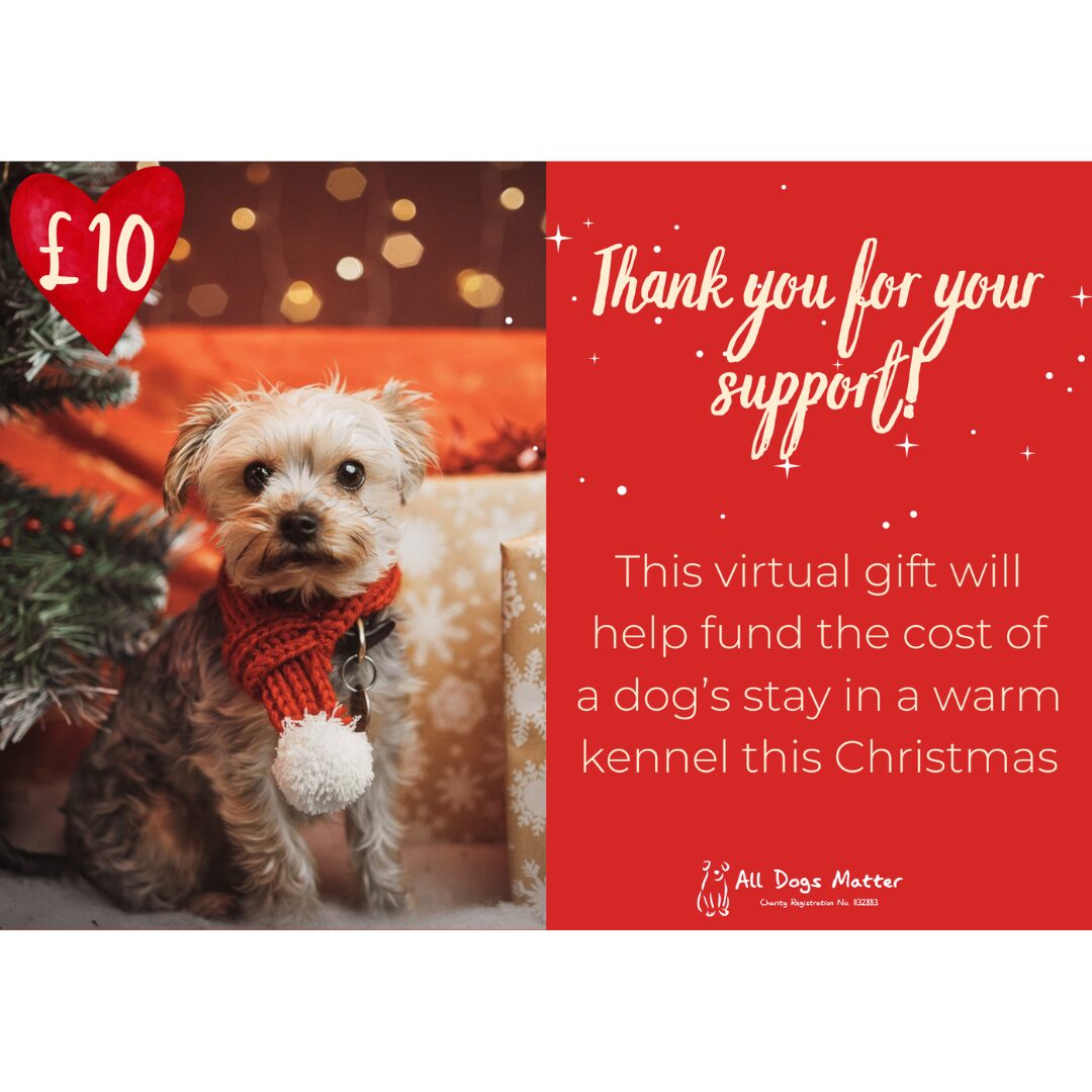 This virtual gift will help fund the cost of a dog’s stay in a warm kennel this Christmas.